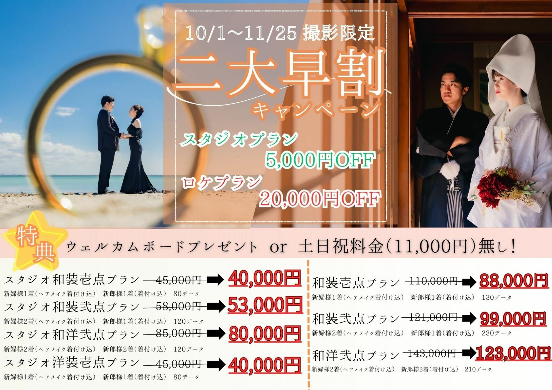 【10/1~11/25期間限定】★二大早割キャンペーン★最大2万円オフ!