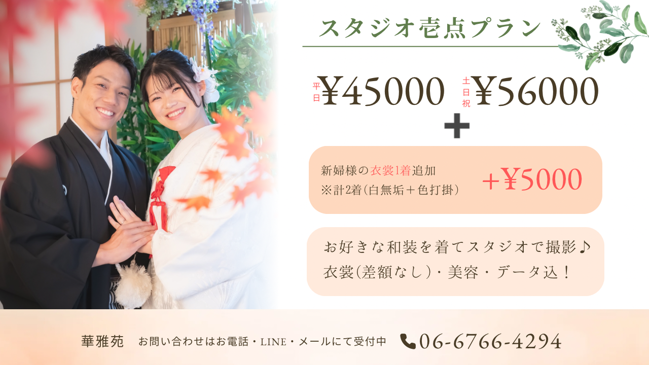 お好きな和装を2着着てスタジオ撮影プラン♪