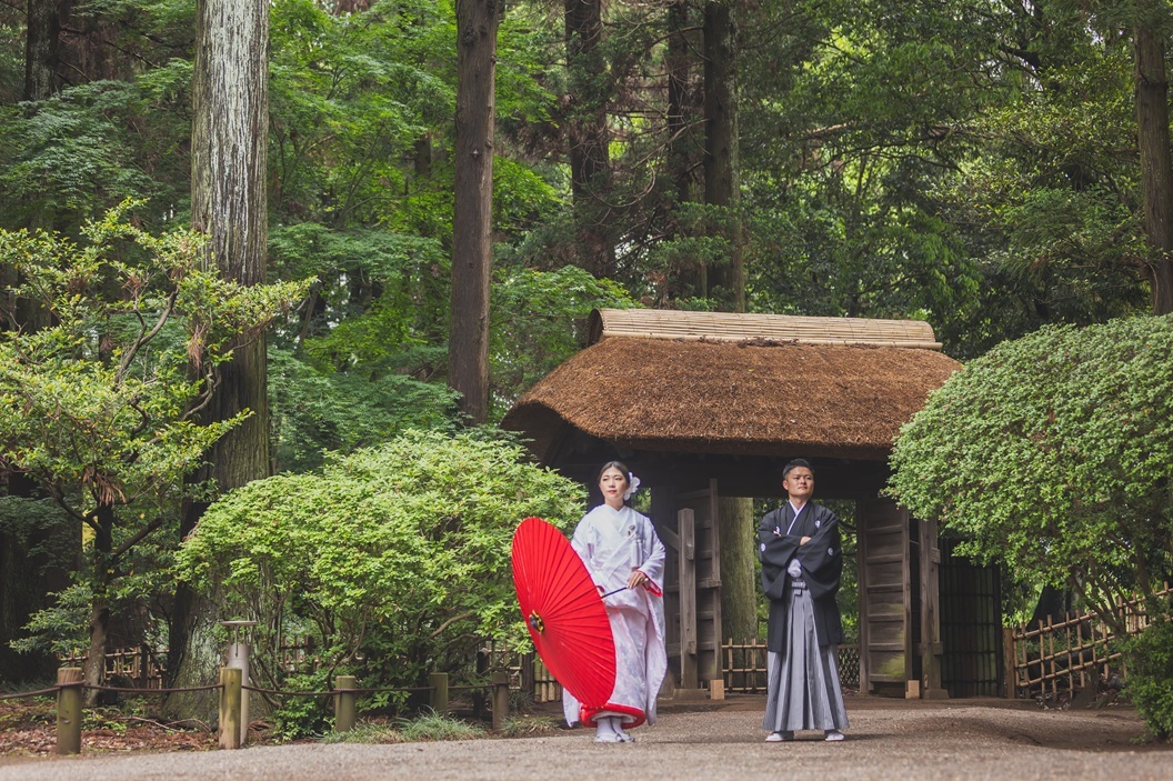 和装ロケ2着プランご利用の方は⇒白無垢で常磐神社!!色打掛で偕楽園!!