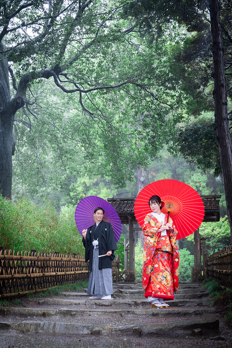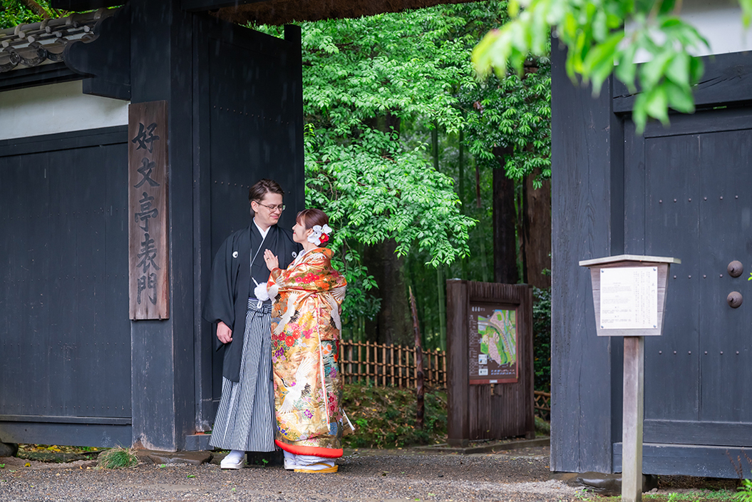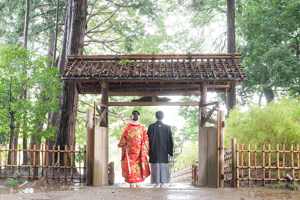 偕楽園は屋根のある門がたくさんあるので傘無しでもお撮影ができます!