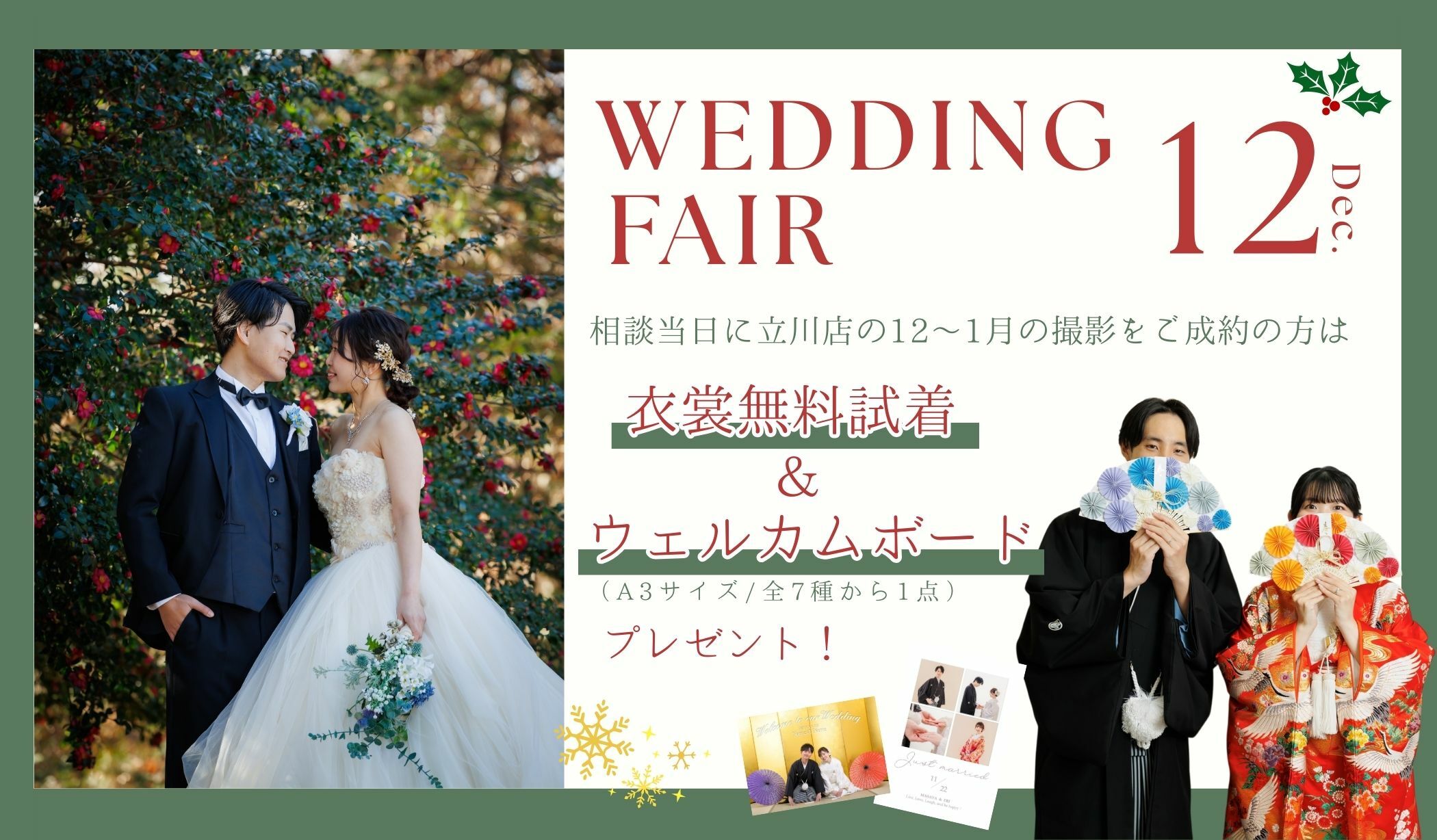 【立川店】1回の来店で完結!12月ご来店相談フェア開催♡衣裳無料試着&ウェルカムボード