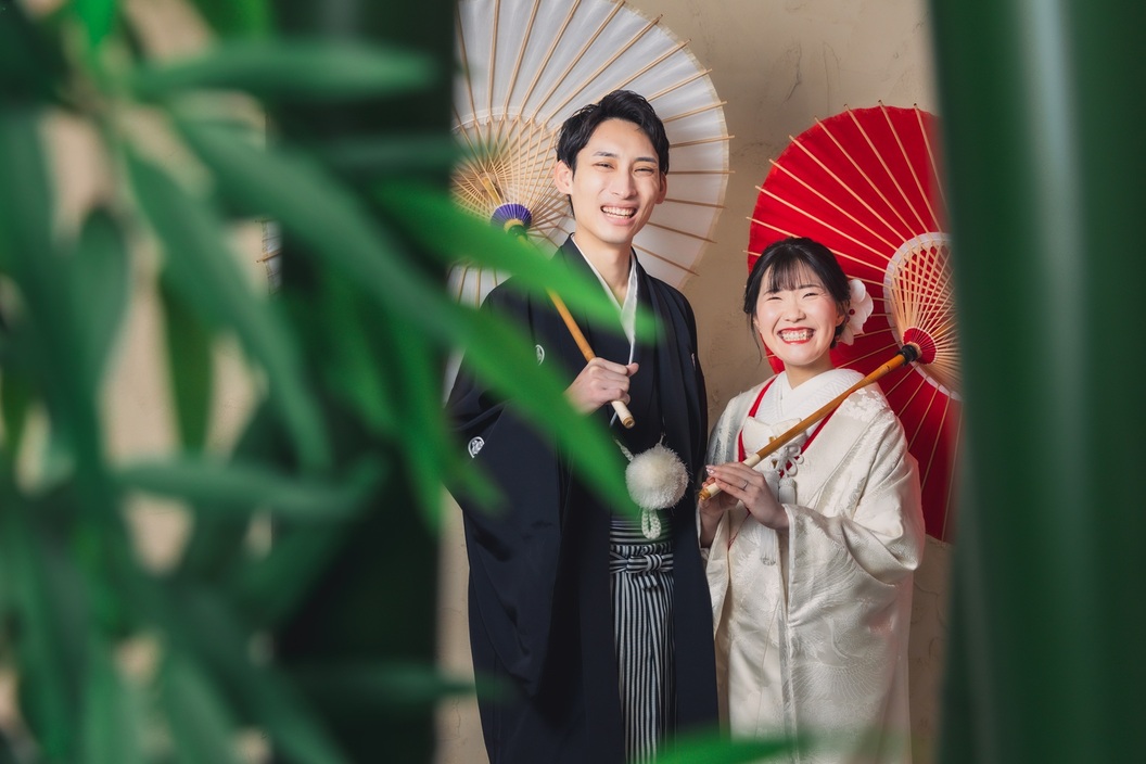 内容:新婦様1着(ヘアメイク・着付け込み)/新郎様1着(着付け込み)