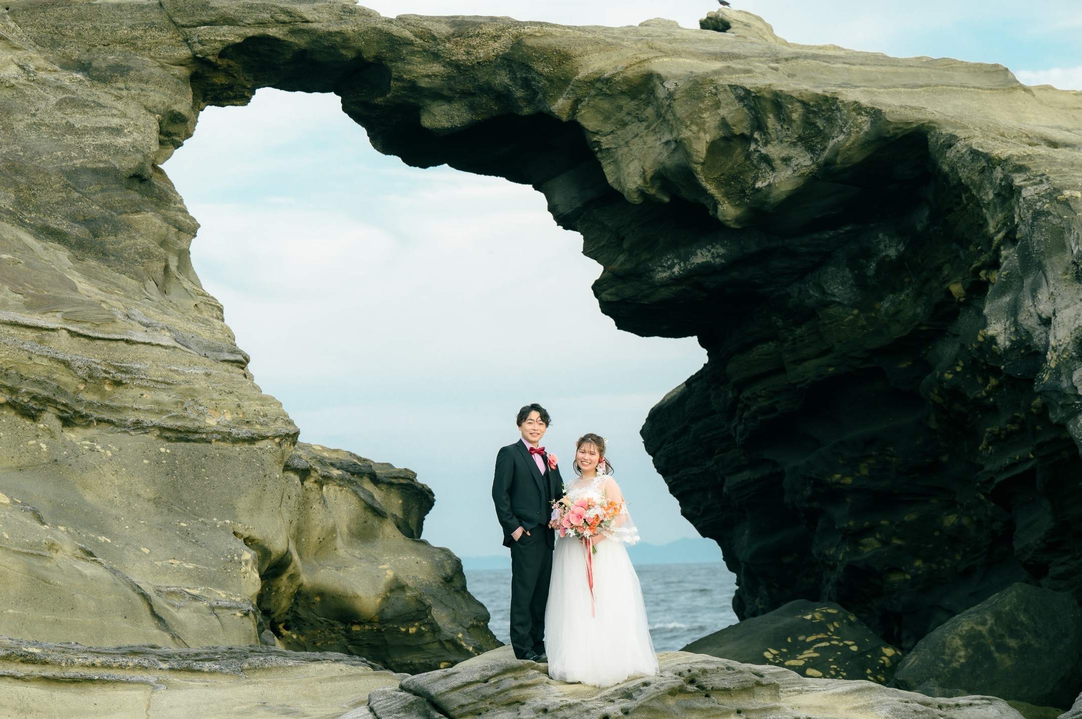 撮影場所:①和装:スタジオ/洋装:城ケ島 Or 湘南の海