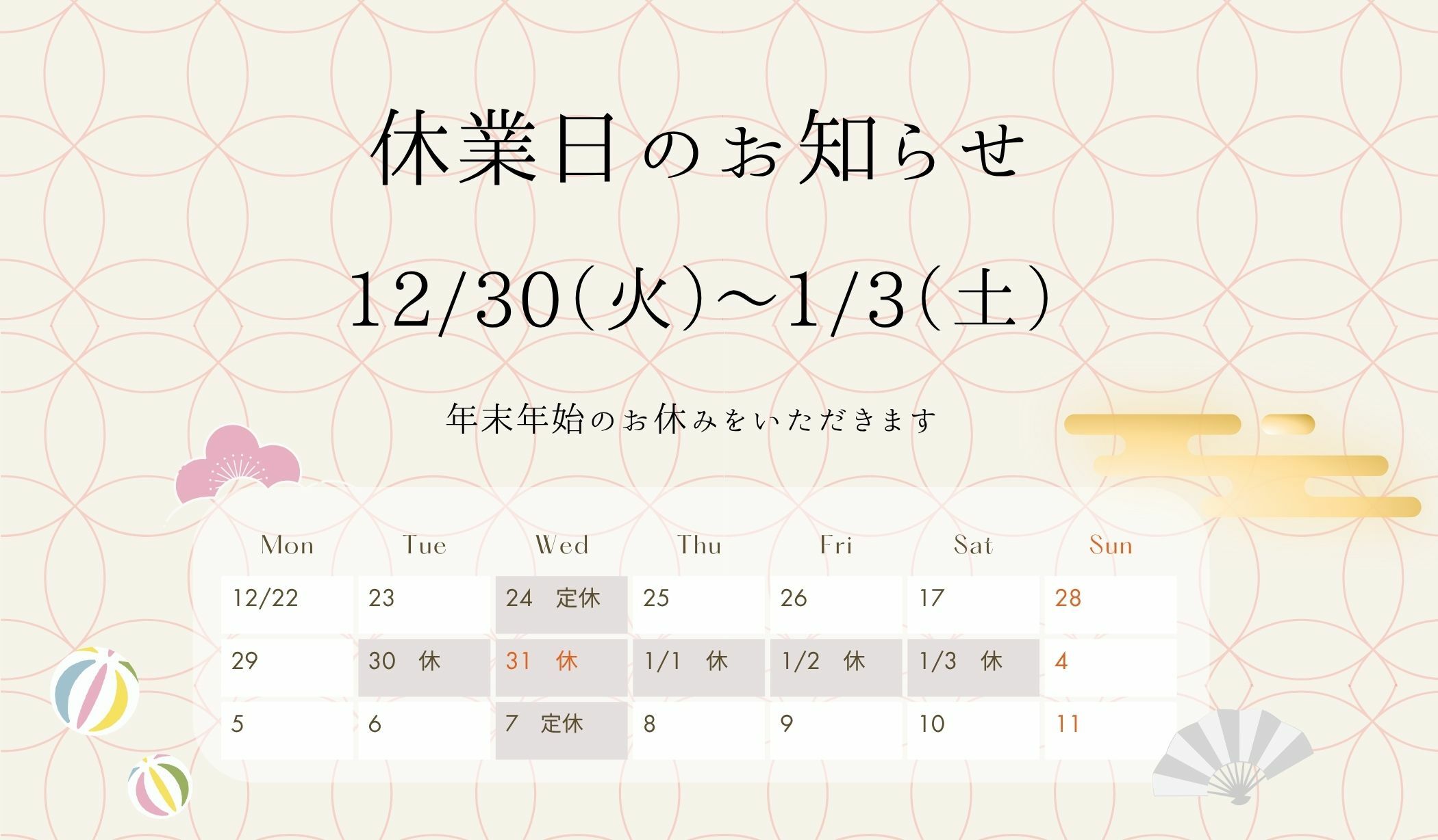 年末年始休業期間:2025年12月30日(火)~2026年1月3日(土)