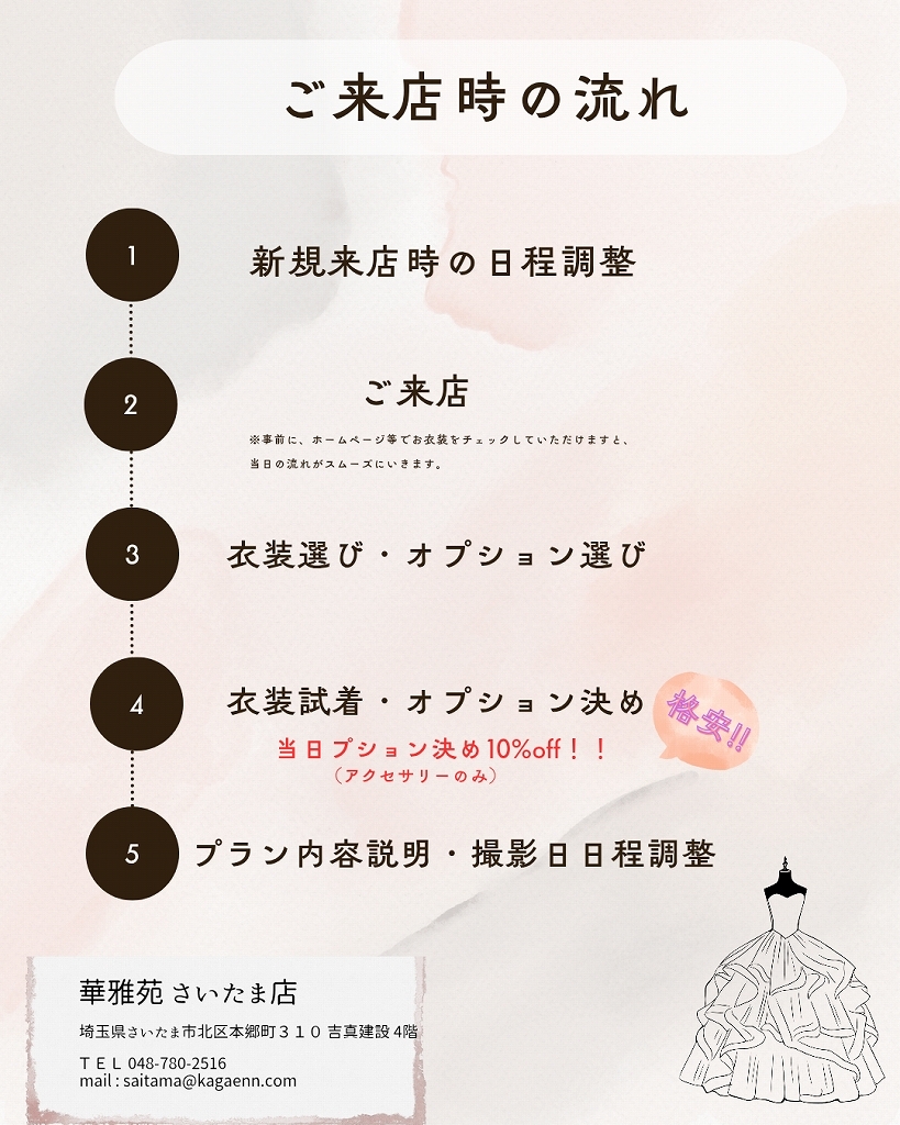衣装フェアに参加いただき、ご予約いただいたお客様には、以下3つの特典付きです!!