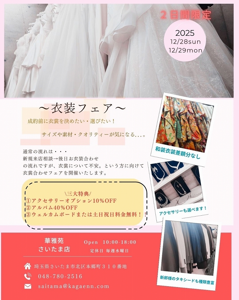 【さいたま店】衣装フェア開催!!12/28・12/29 2日間限定!