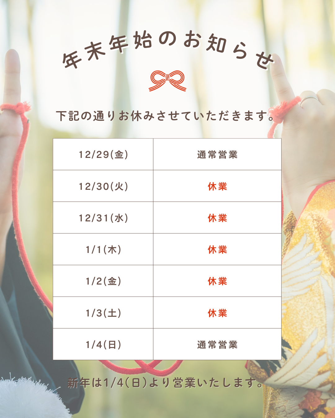 ~年末年始休業のお知らせ~