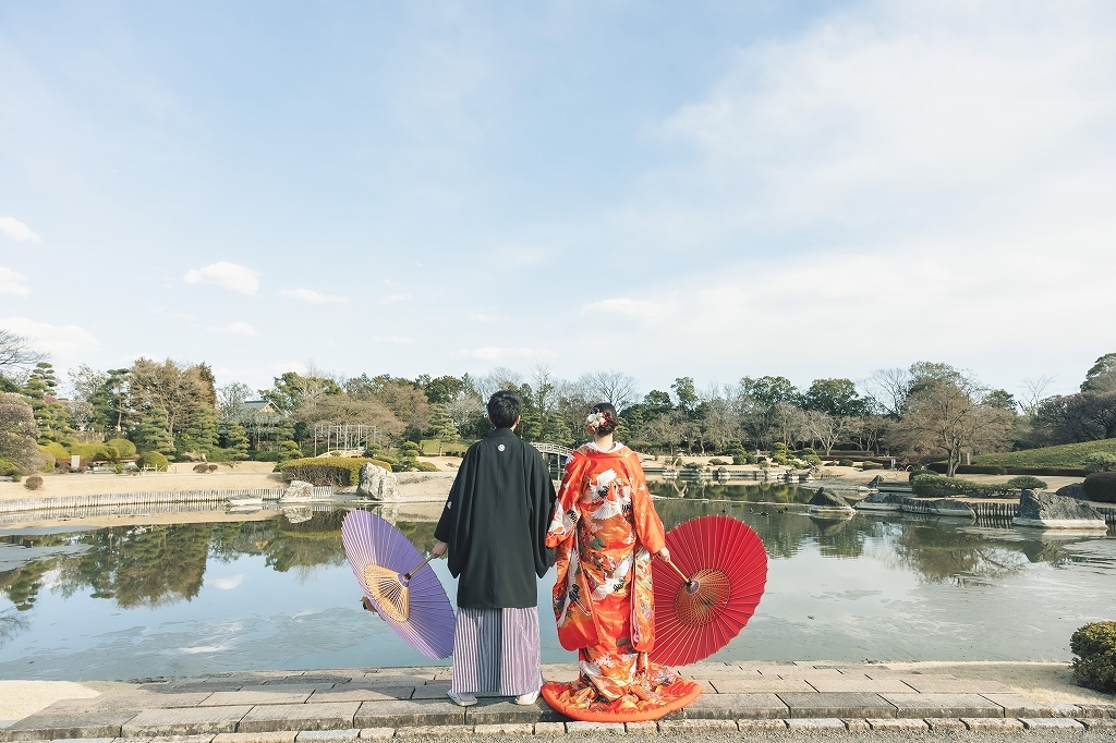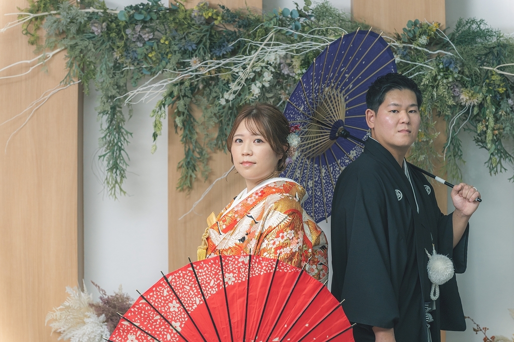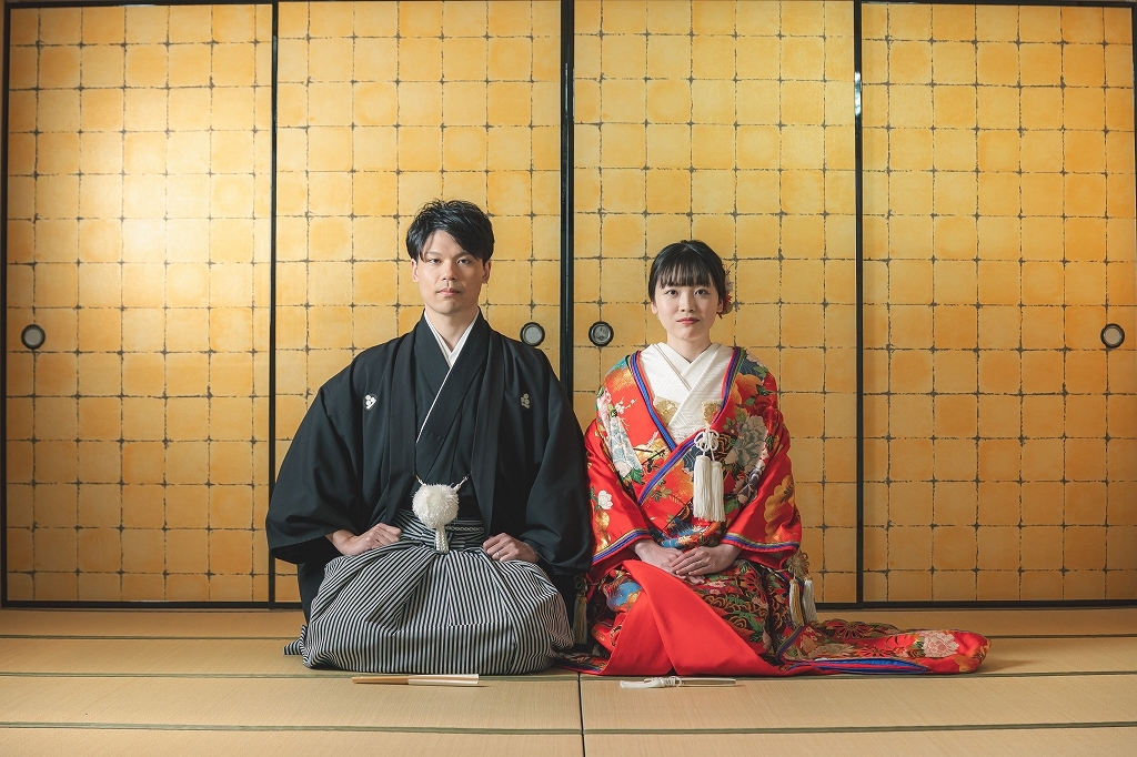 内 容:新婦様2着(ヘアメイク・着付け込み)/新郎様1着(着付け込み)