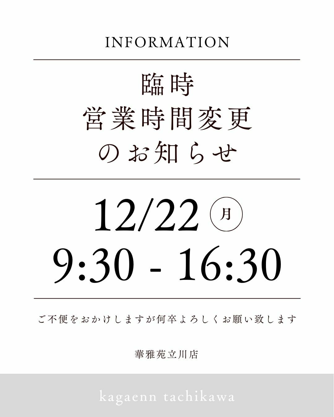 ※12月22日(月)より通常営業時間の10:00〜18:00に戻ります