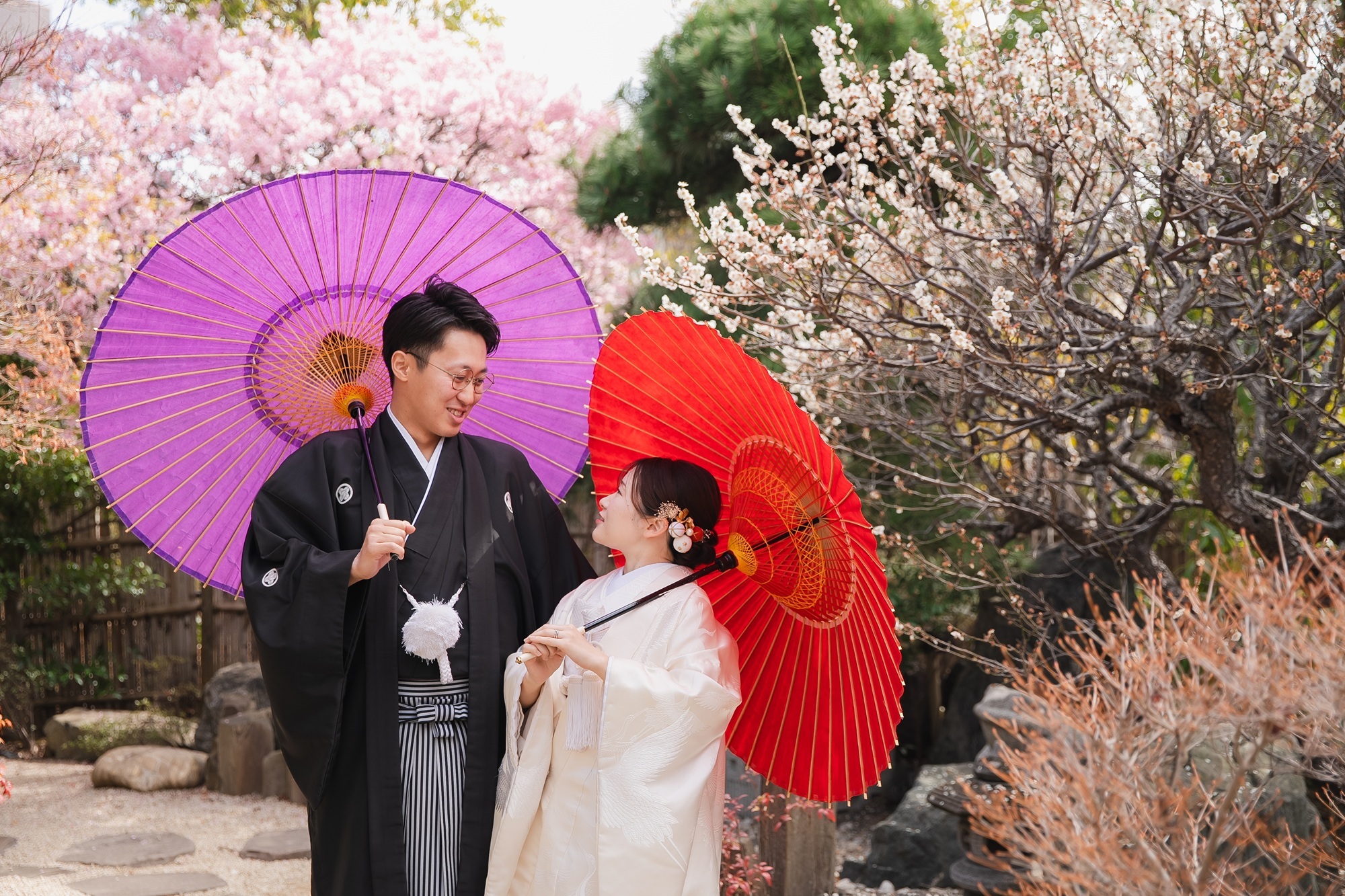 衣装:新婦様2着(ヘアメイク・着付け込み)/新郎様2着(着付け込み)