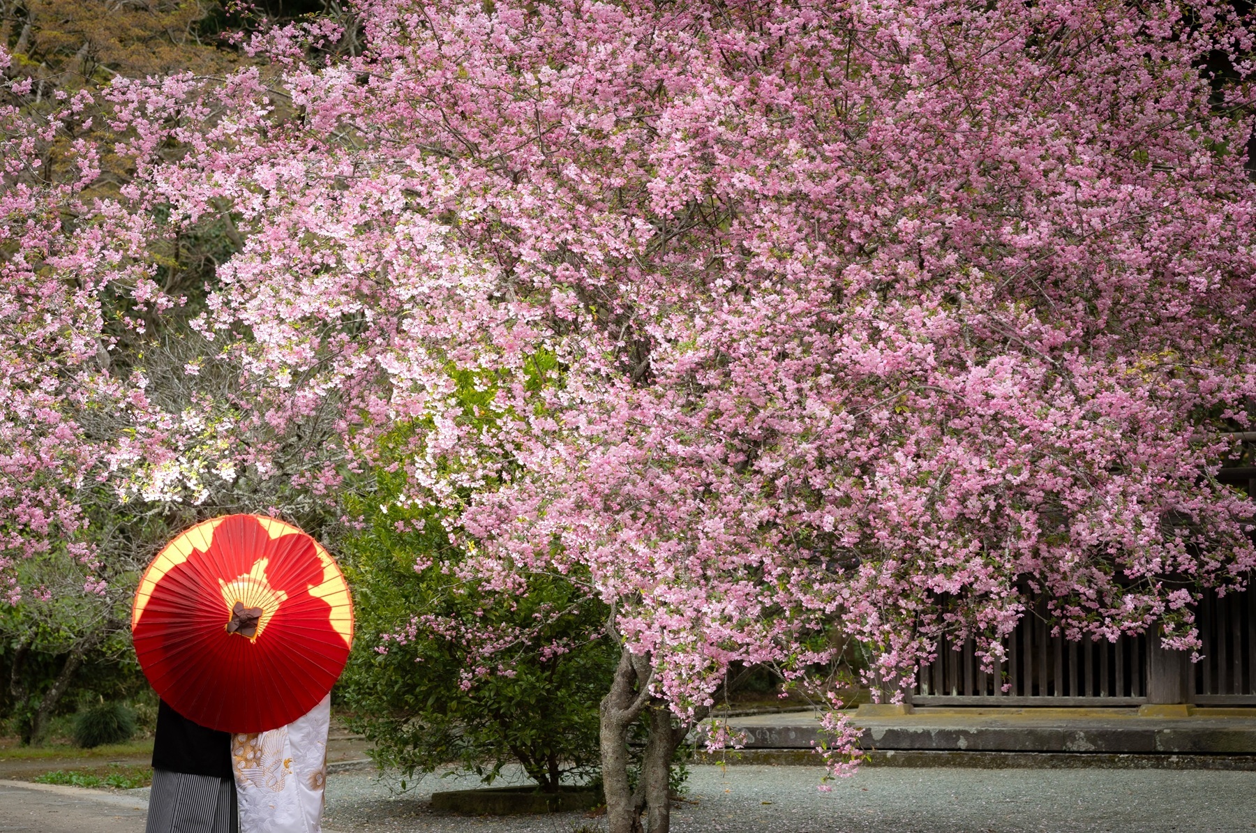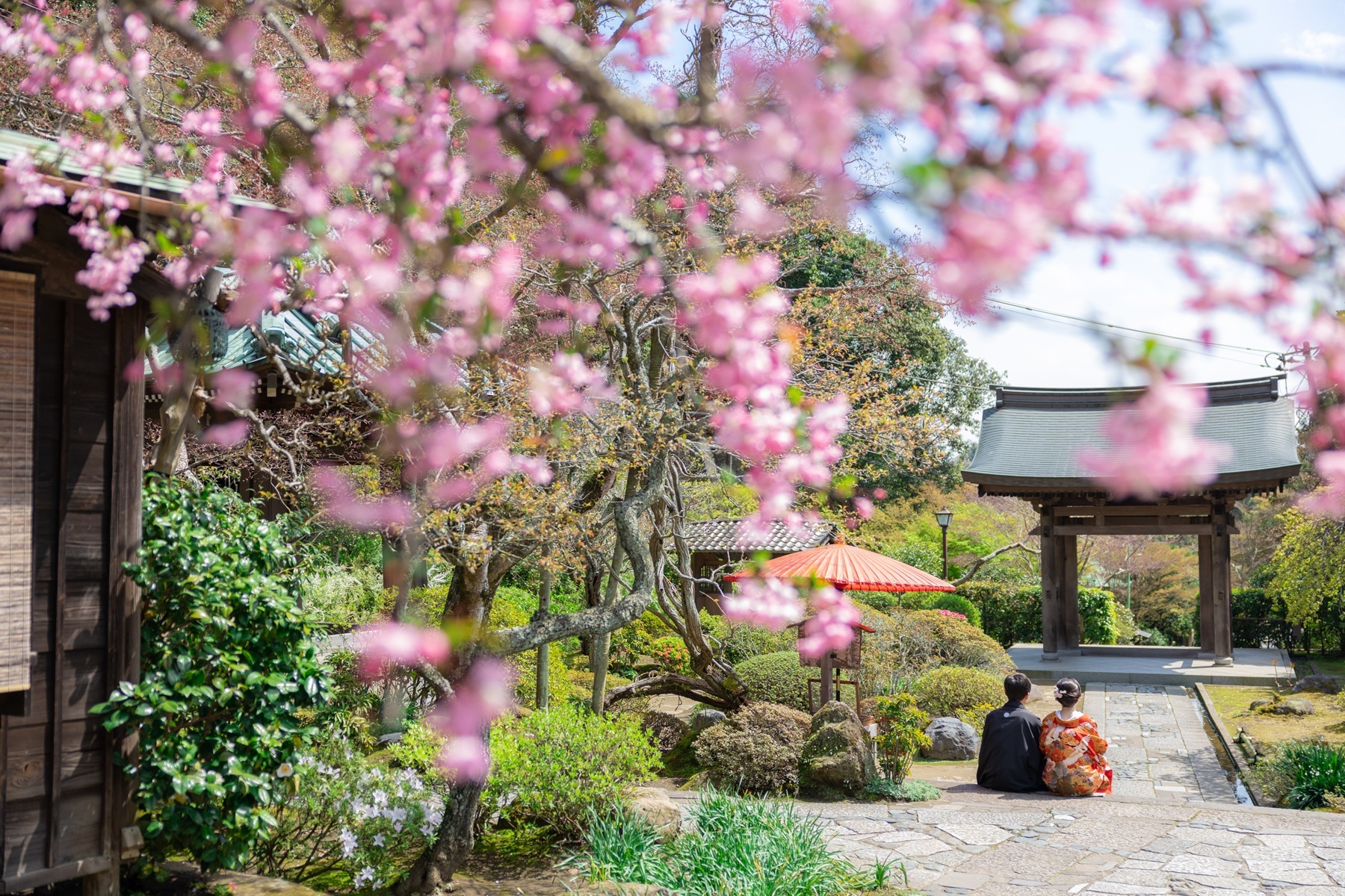▲鎌倉店 妙本寺の桜と海棠 ※海棠の花も同時期に咲き、濃いピンクの花が写真映えします