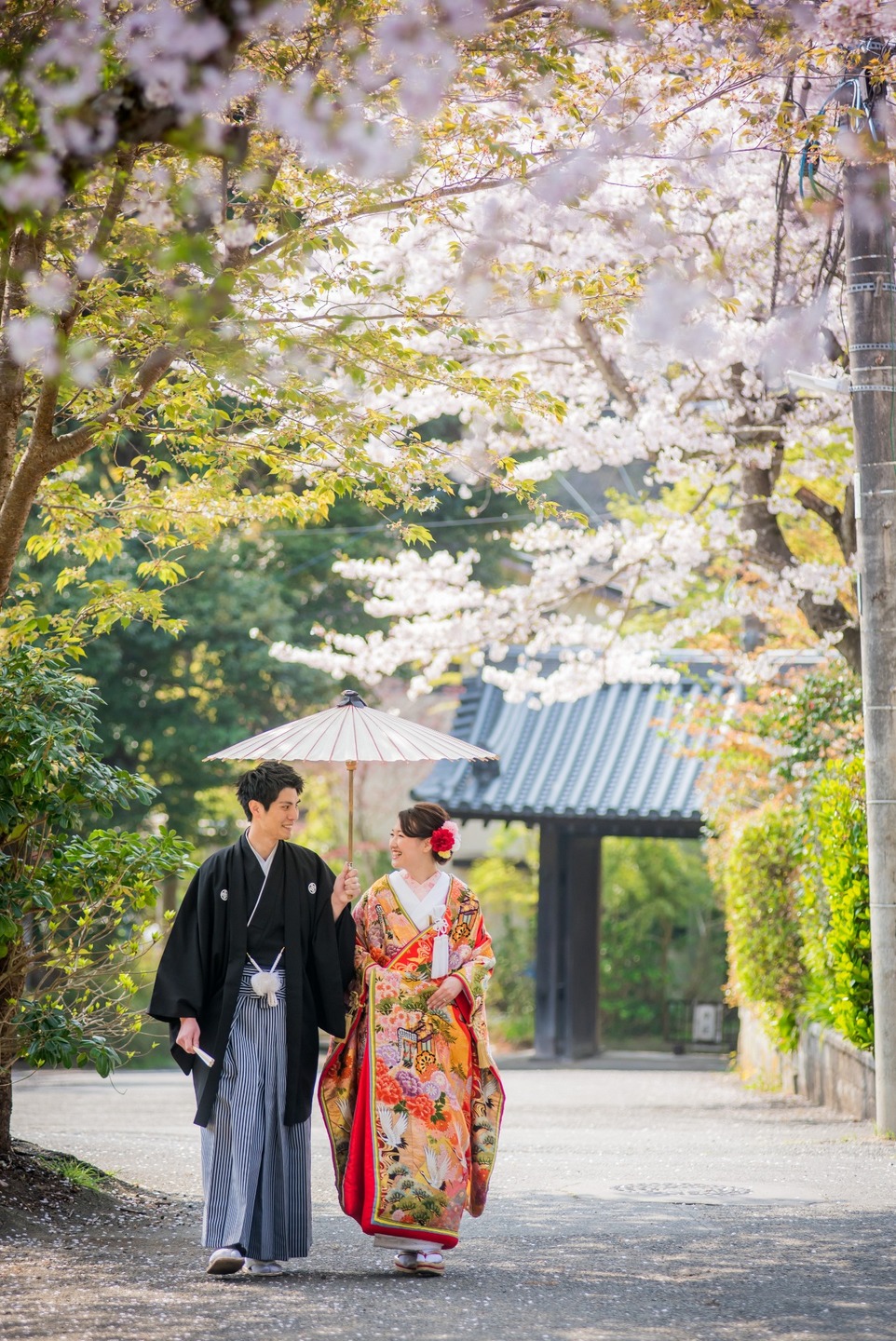 ▲妙本寺 木造建築の本堂と桜と海棠が和の雰囲気を際立たせます