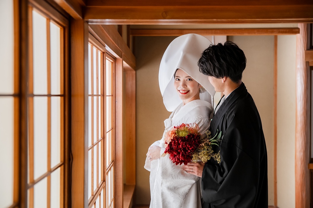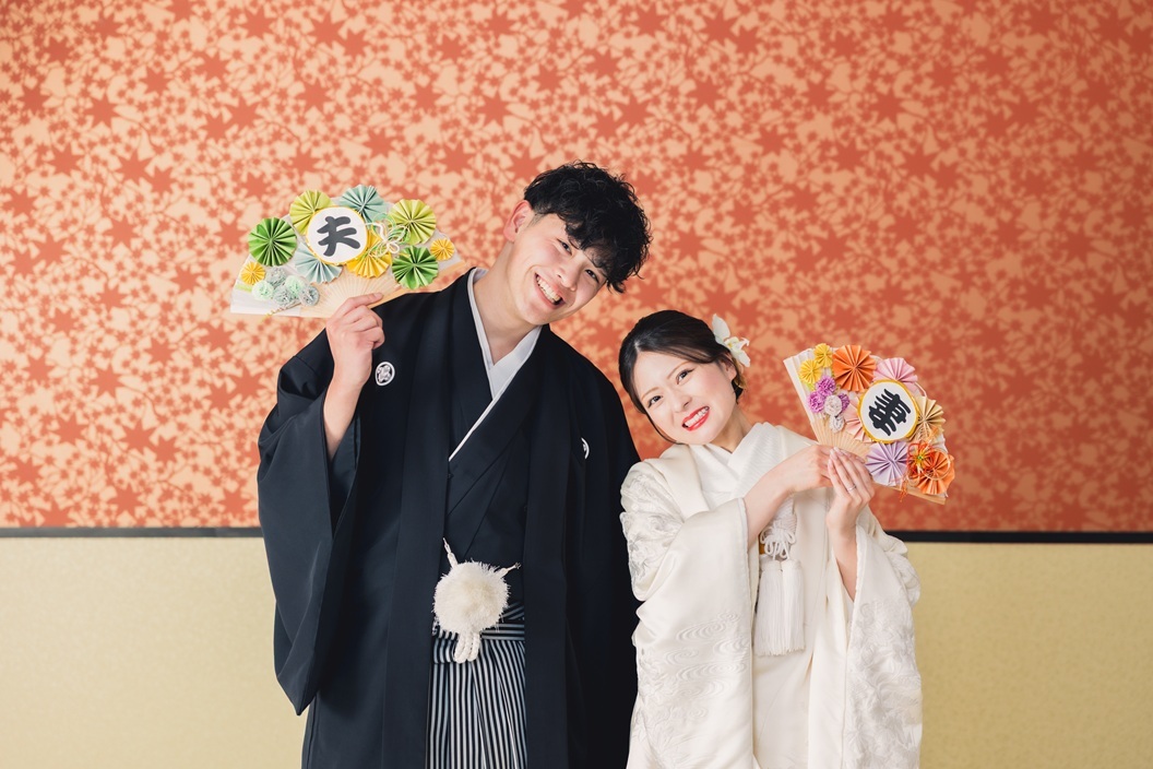衣装:ご新婦様2着(ヘアメイク着付け込)、ご新郎様1着(着付け込)