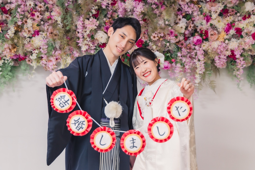 内容:新婦様1着(ヘアメイク・着付け込み)/新郎様1着(着付け込み)