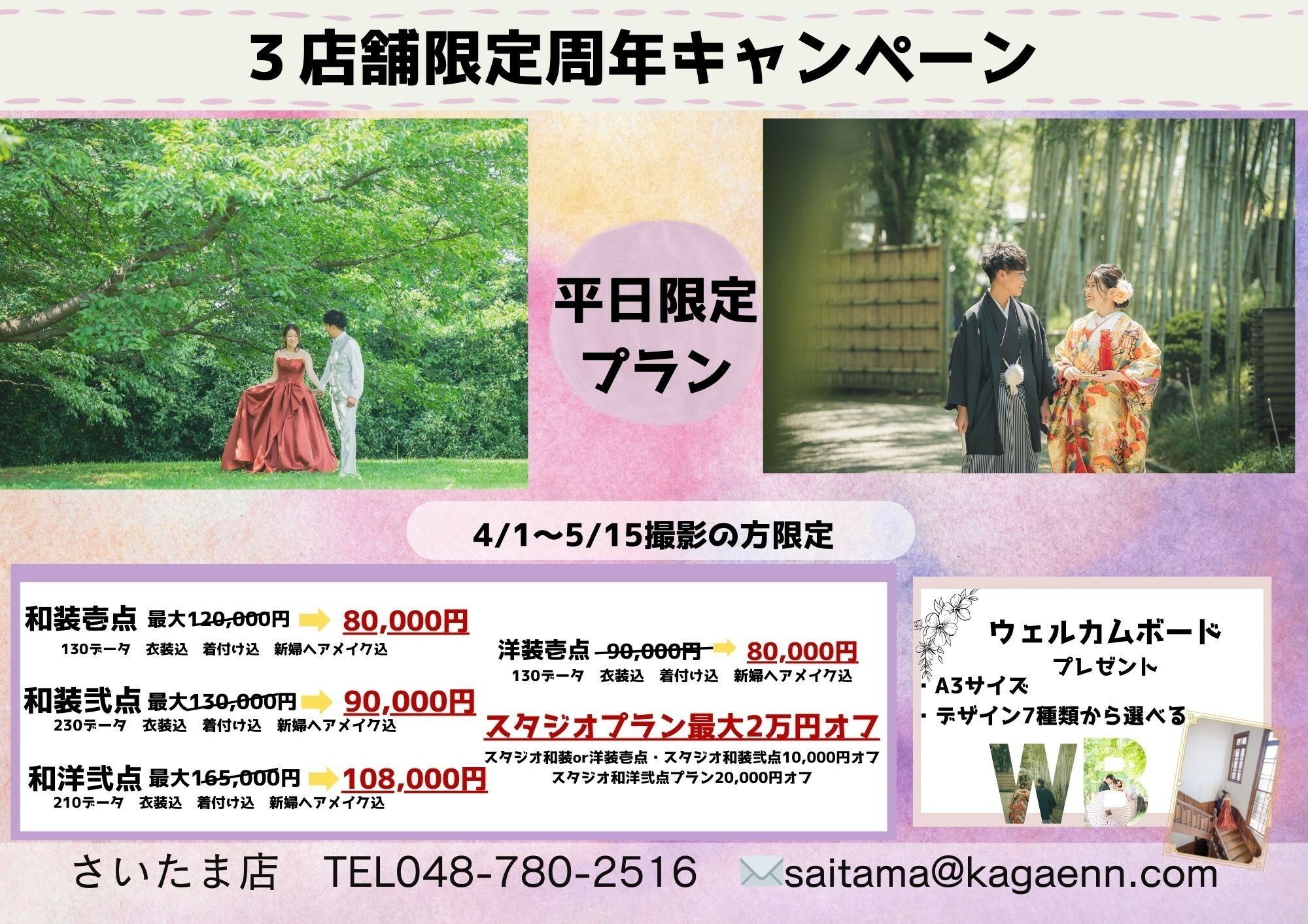 周年キャンペーン!4/1~5/15平日撮影限定!