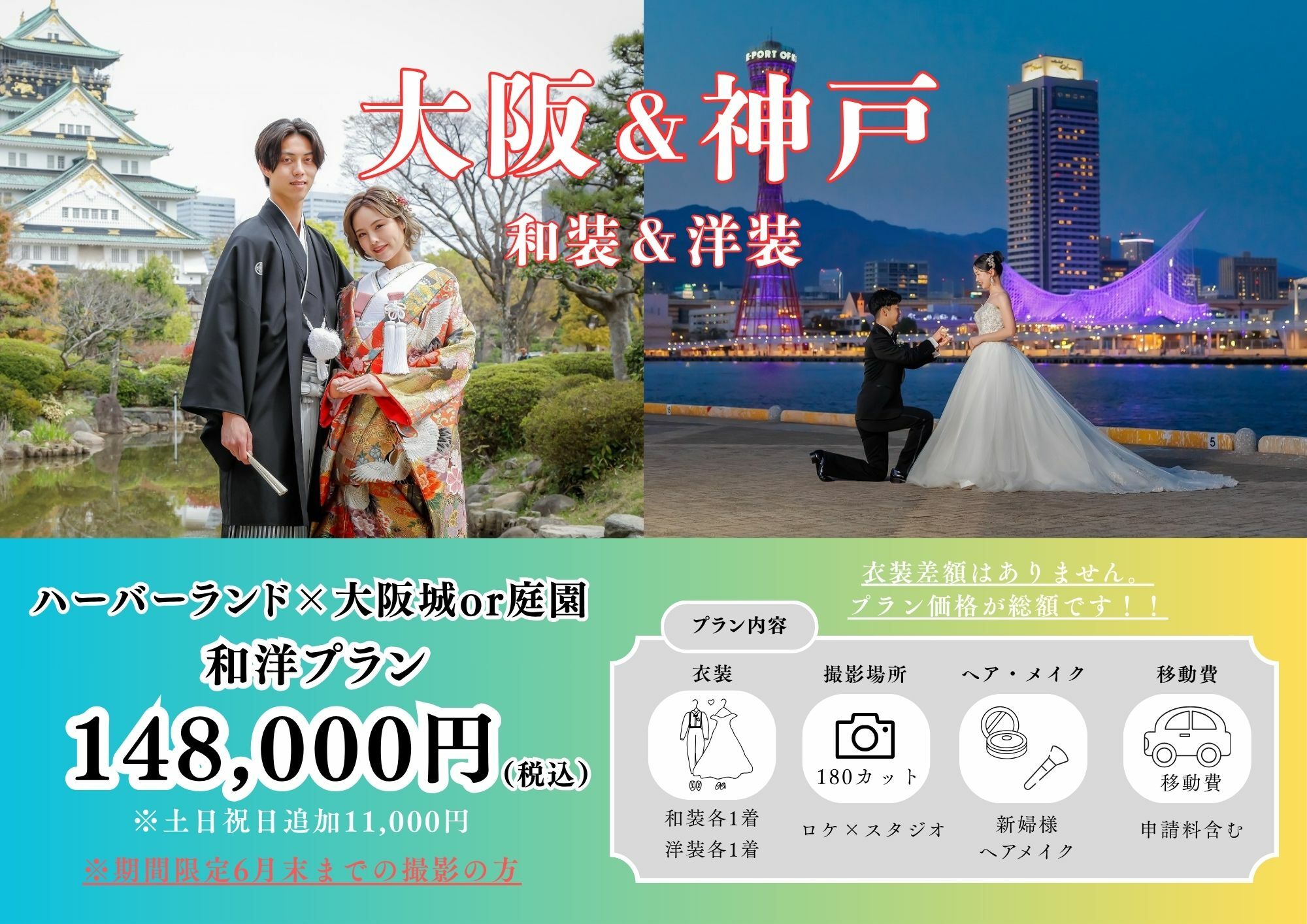 【6月末までの撮影限定】神戸ハーバーランド&大阪(庭園or大阪城)148,000円♡