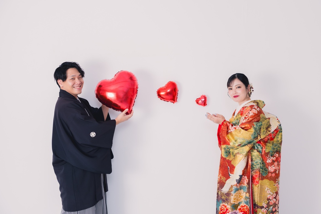 内容:新婦様2着(ヘアメイク・着付け込み)/新郎様1着(着付け込み)