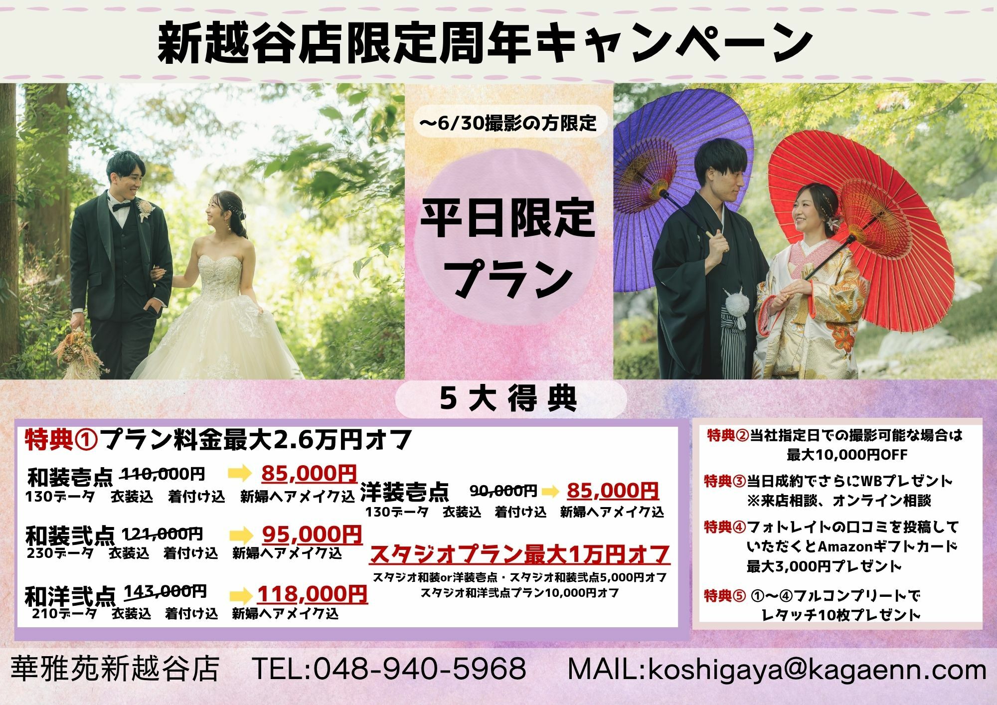 お問い合わせの際、新越谷店限定周年プラン希望とお伝えください