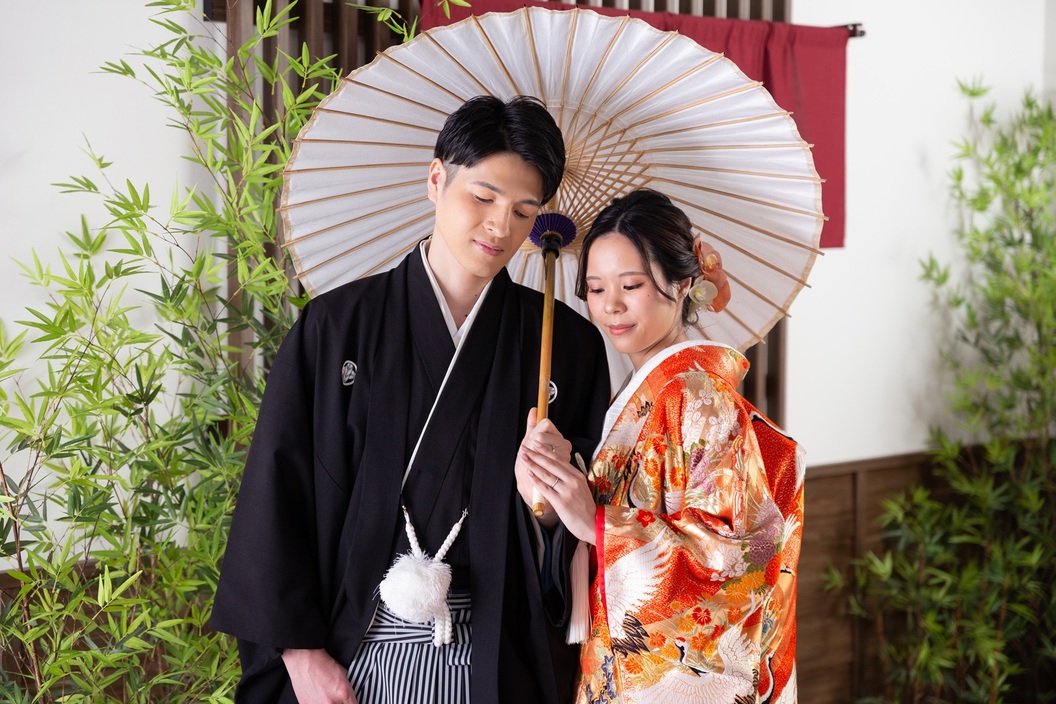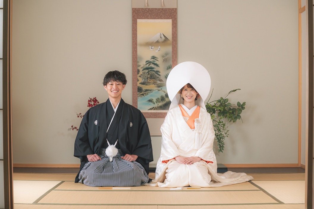 内容:新婦様2着(ヘアメイク・着付け込み)/新郎様1着(着付け込み)