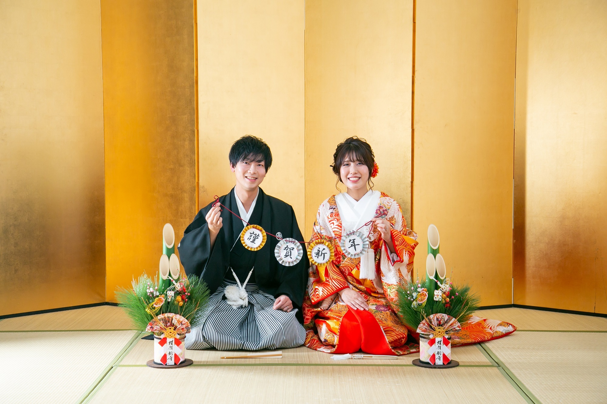 【つくば店】和装スタジオ/新年のご挨拶用に“金屏風ショット”