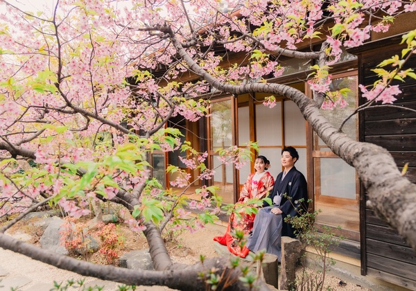 四季亭は例年2月下旬から3月上旬にかけて、河津桜が咲きます!和装がとても映えるのでおすすめです。👘河津桜キャンペーン👘撮影期間:2/24~3/10🌸和装壱点プラン料金:88,000円 カット数:130カット衣装:新婦様1着(ヘアメイク・着付け込み)/新郎様1着(着付...