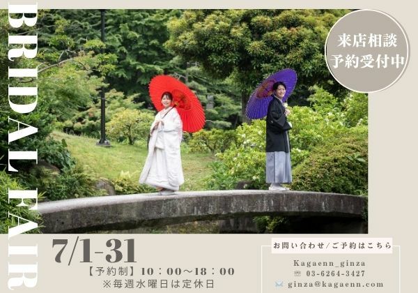 7月開催 来店相談フェアのお知らせ 7月~8月に銀座店での撮影を検討している方必見 !----------------------------------------銀座店 来店相談フェア開催中♥場所・・・・・・・銀座店開催日・・・・・7月1日~7月31日(水曜日は...