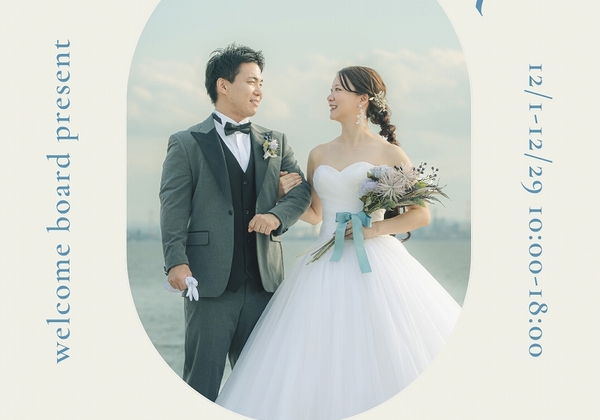 12月の来店相談 成約特典のご案内適用条件:12月にご相談来店へお越しいただき、撮影予約をされた方成約特典ウェルカムボードプレゼント----------------------------〇開催日 12月1日~29日 ※毎週火曜日を除く〇所要時間 30分~1時...