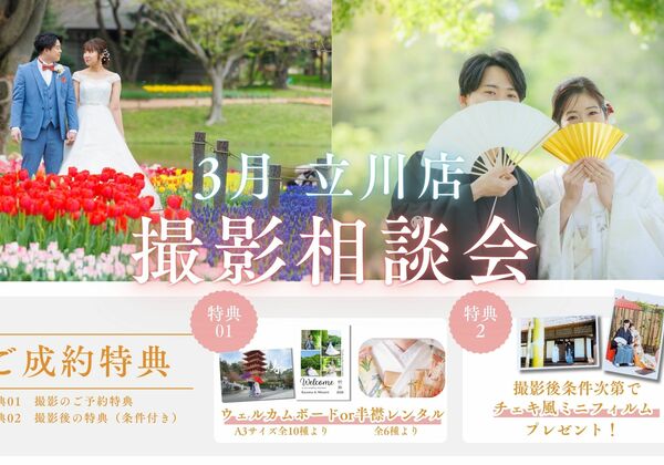 立川店 スタジオリニューアル!【立川店】\選べる特典付き♡3月ウエディングフェア開催/ オンライン相談・ご来店相談のご案内