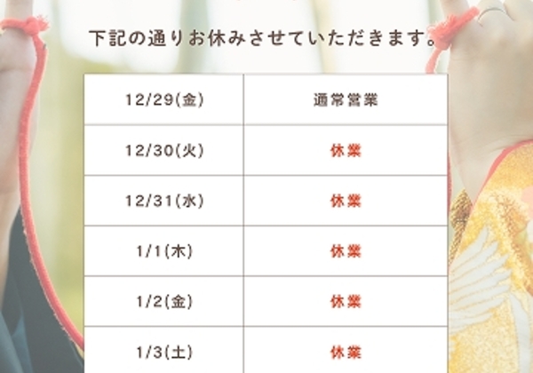 新越谷店~年末年始休業のお知らせ~