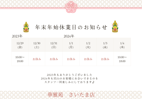 さいたま店【さいたま店】年末年始休業のお知らせ