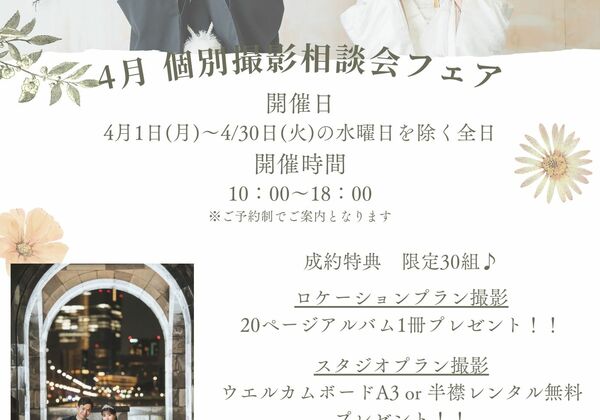 銀座店【銀座店】4月開催 成約特典付き 個別撮影相談会開催のお知らせ