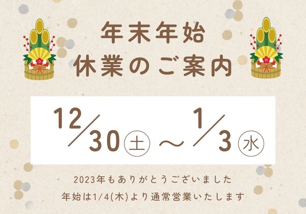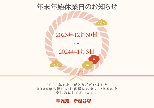 新越谷店【新越谷店】年末年始休業のお知らせ