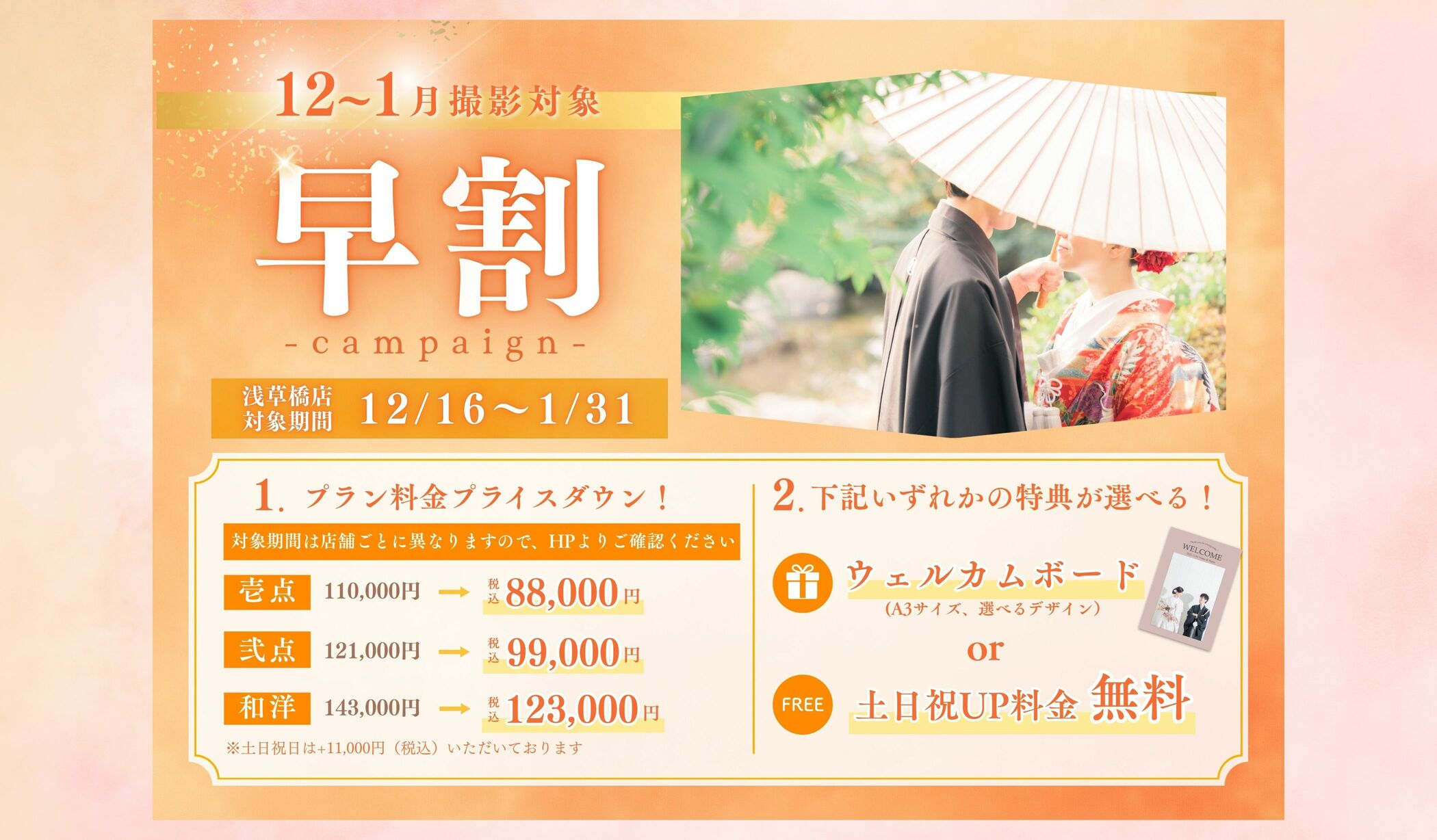 - 【12/16~1/31までの期間限定】2大特典!早割キャンペーン