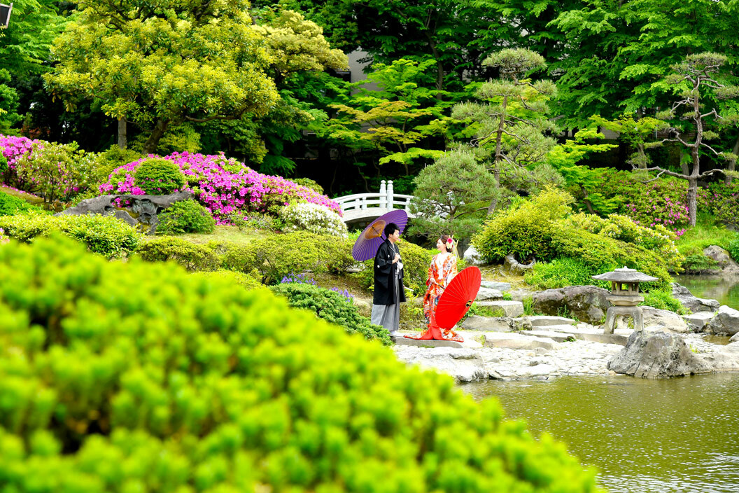 - ※3/1~6/12は庭園側の都合で撮影の受付を停止しております 清澄庭園は池の周囲に築山や名石を配置した回遊式林泉庭園で、東京都指定名勝の庭園です。