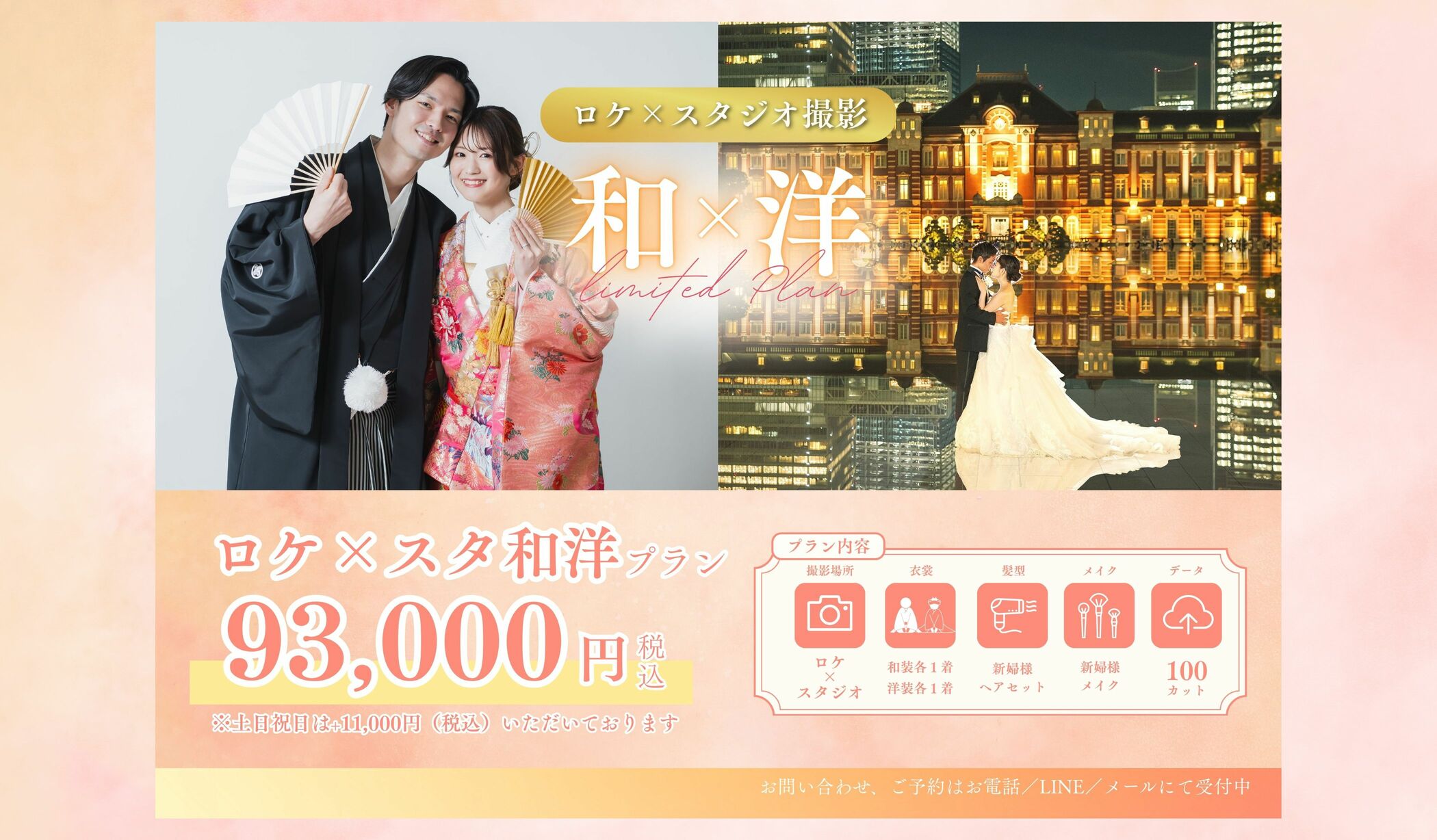 | 壱点プラン | 弐点プラン | 和洋弐点 プラン ★和装は庭園 洋装は東京駅 |