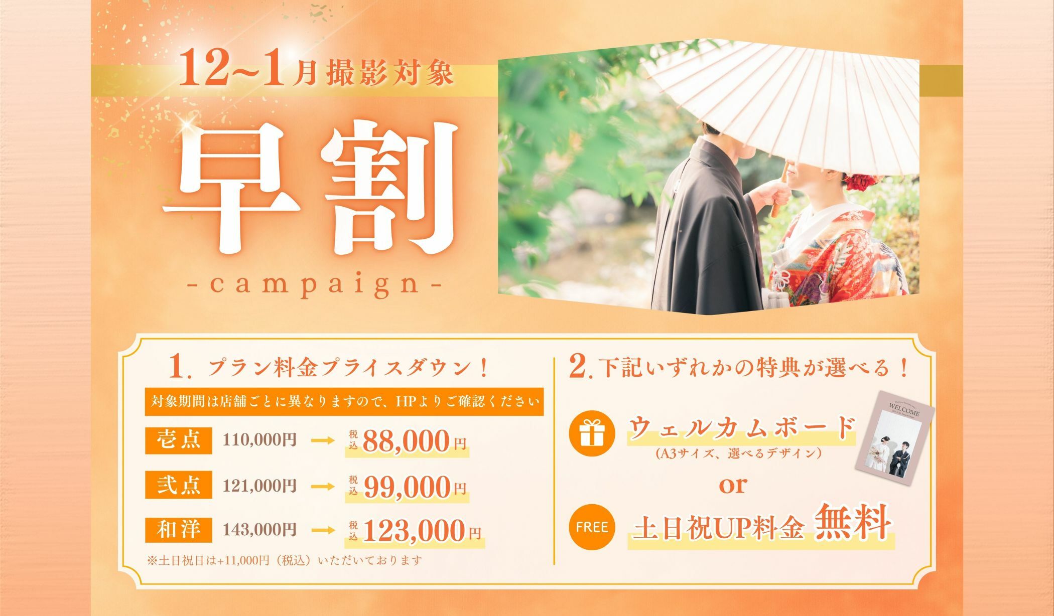 | 12/16〜1/31 | 早割キャンペーン ¥88,000 |