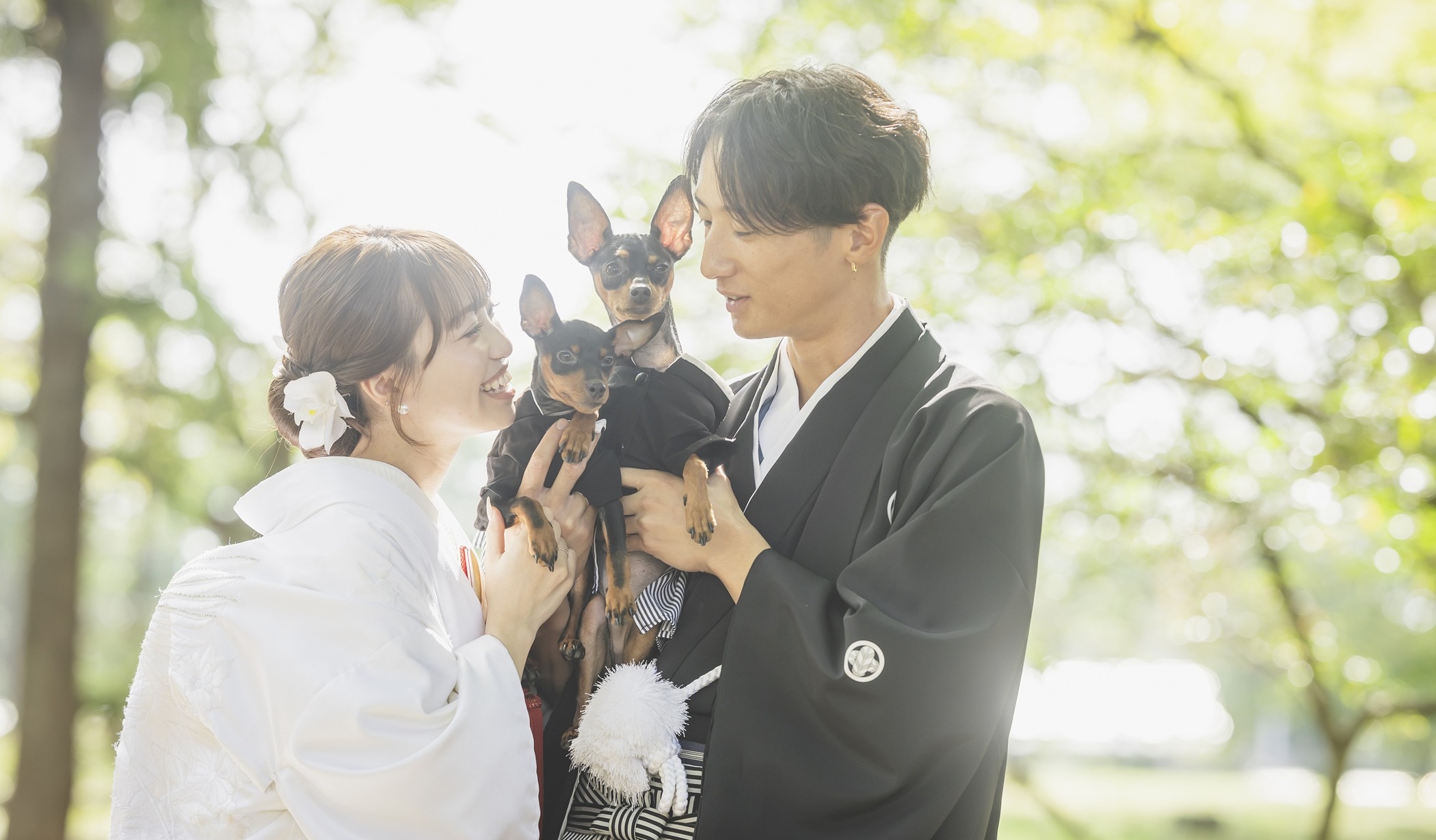 - ペットとの撮影も可能。定番の金屏風から装花バックやレンガ調まで。 和洋いずれも豊富なスタジオ背景にて撮影が楽しめる。