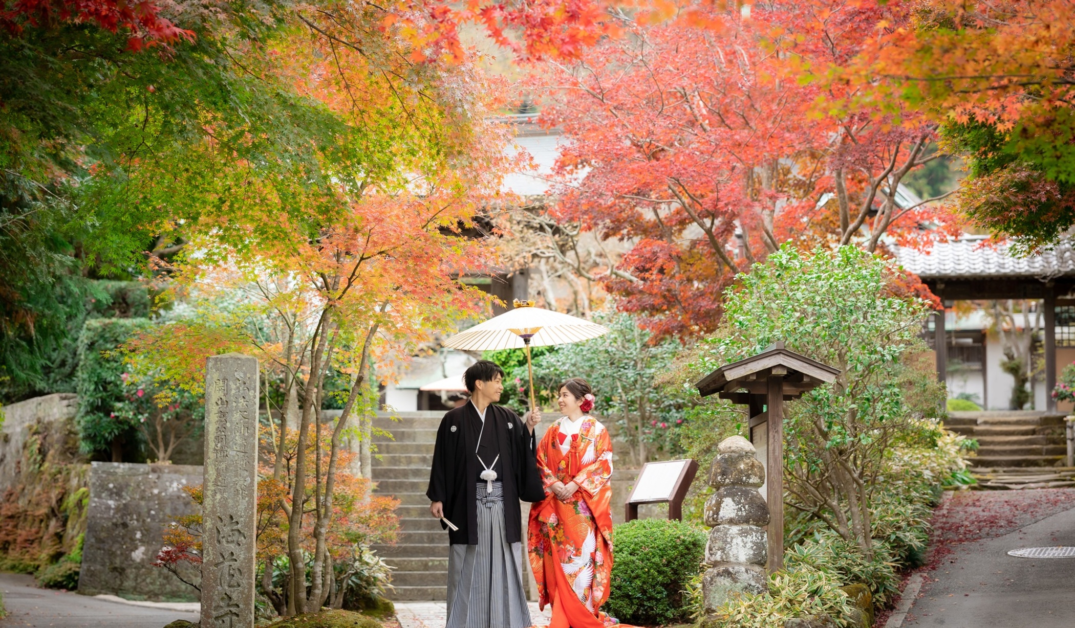 和装にぴったりの歴史ある寺院やウェディングドレスでの海ロケ撮影もご案内