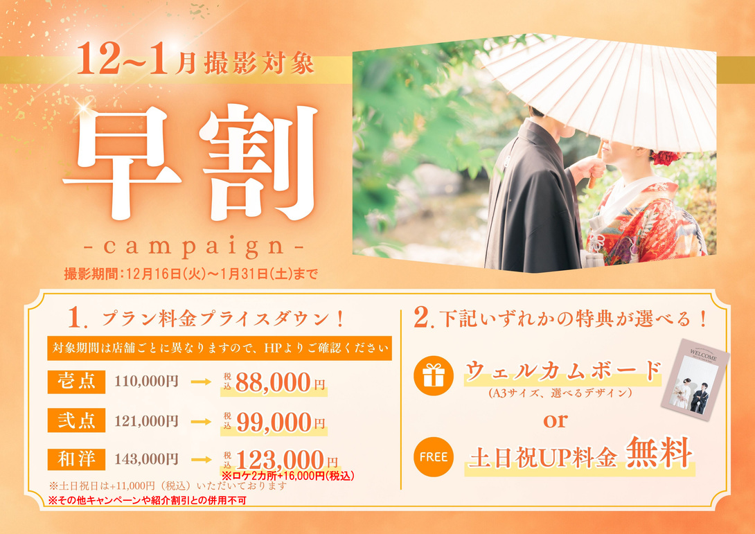 - 期間限定12/16~11/31★2大特典!早割キャンペーン